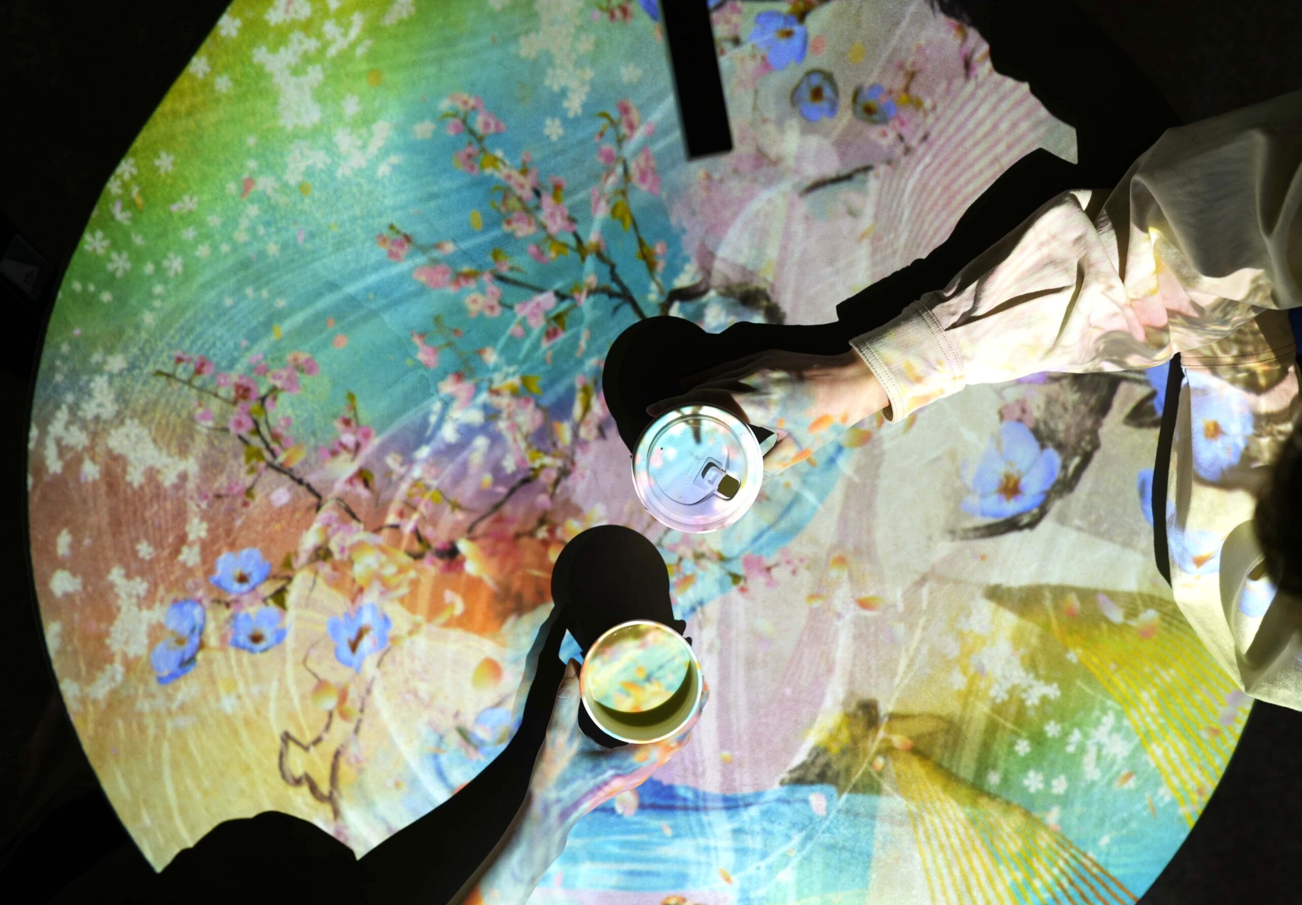 カウンターでスタッフが点てる抹茶は、プロジェクションマッピングの演出と連動し、目の前で美しい光のアートが展開していく様をお楽しみいただけます。
