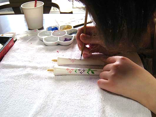 和蝋燭造りを130年致しています工房にて、絵付けの体験をして頂きます。