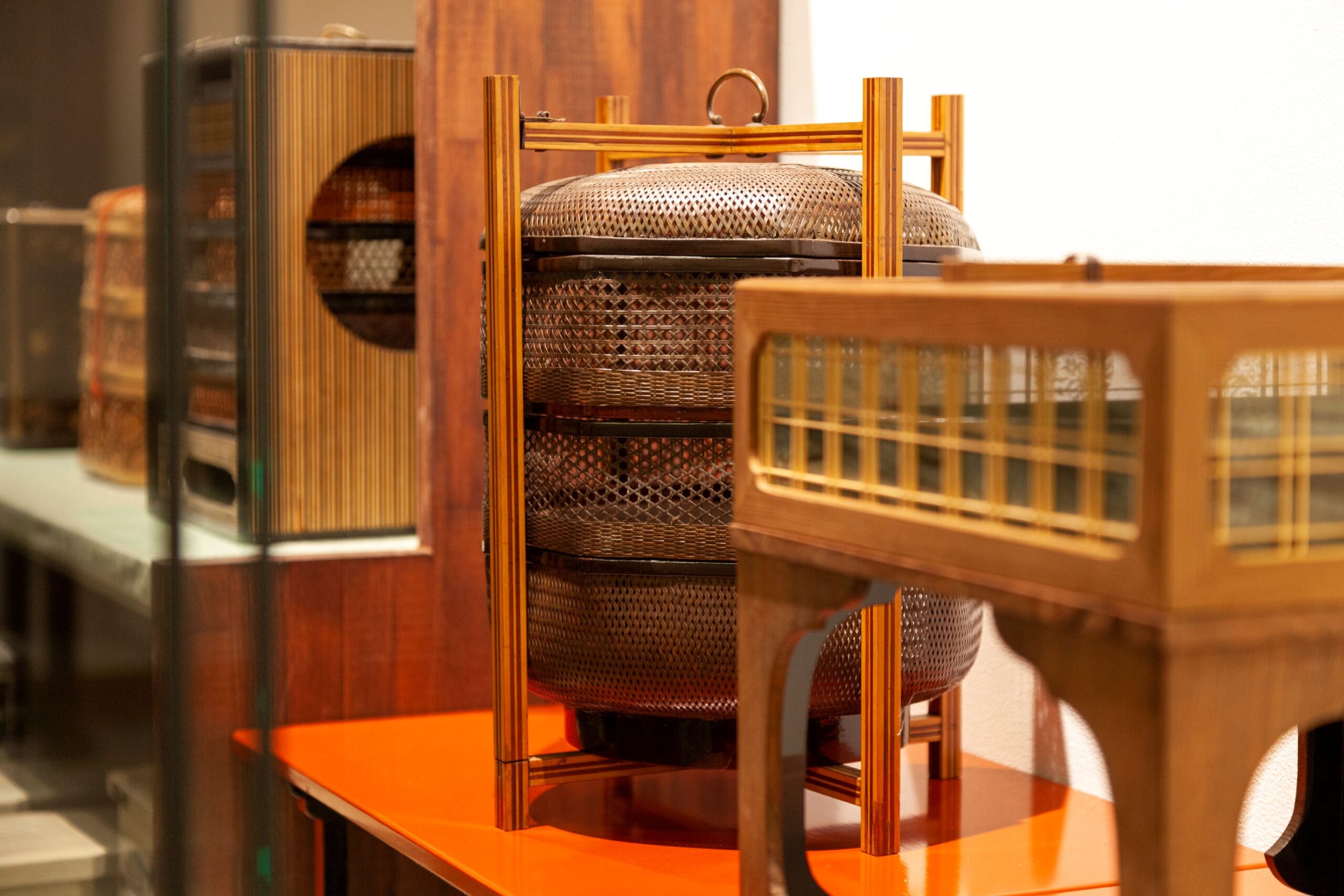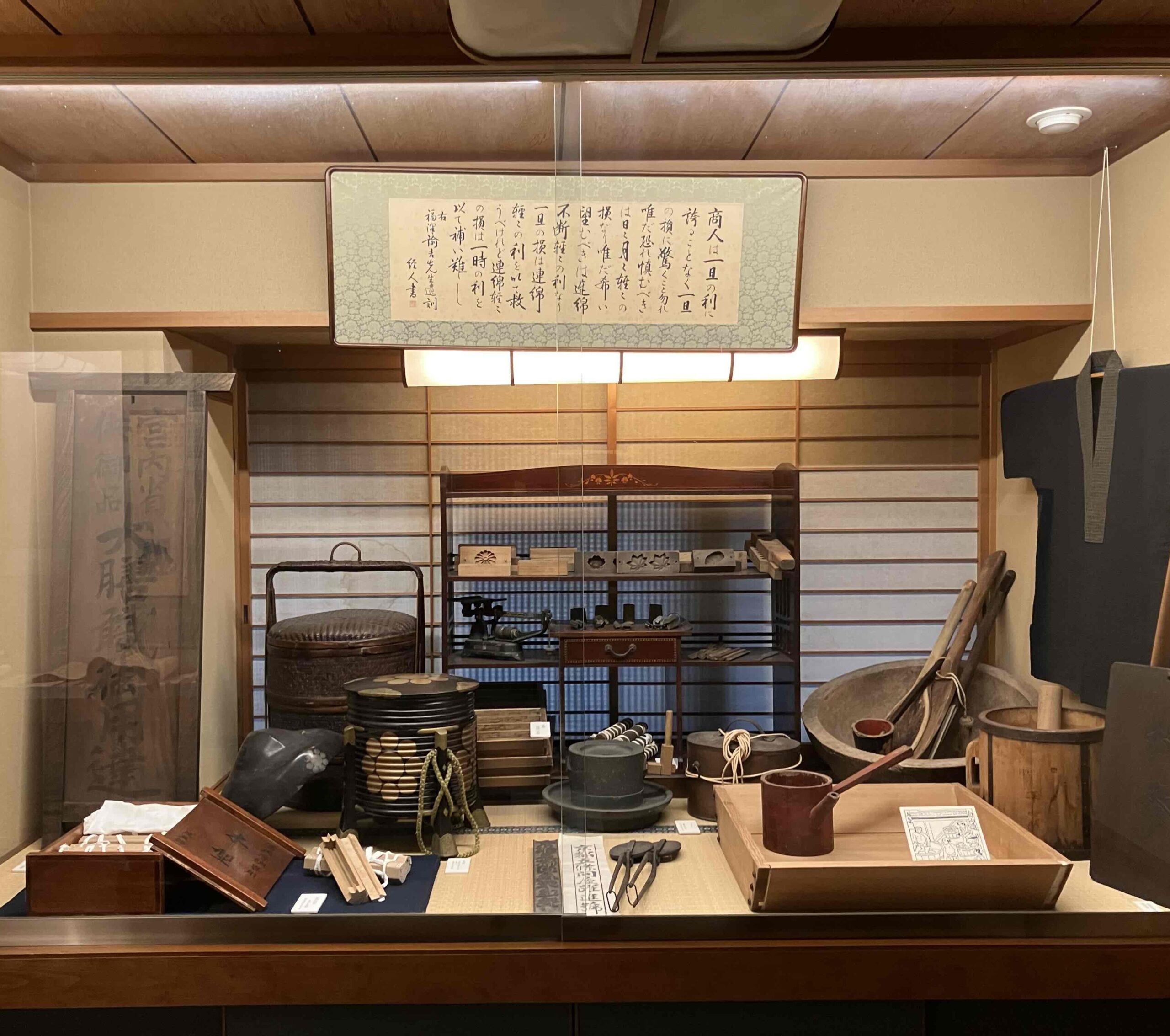 元禄2年創業 半兵衛麸。本店では江戸時代のお辨當(べんとう)箱を展示した博物館や、当時の道具などをご紹介した展示室をご自由にご覧いただけます。同店が所蔵する貴重な食器や麸の料理に関する書物などの展示からは、四季に応じて食器を使い分けた日本人の美意識が感じ取れます。