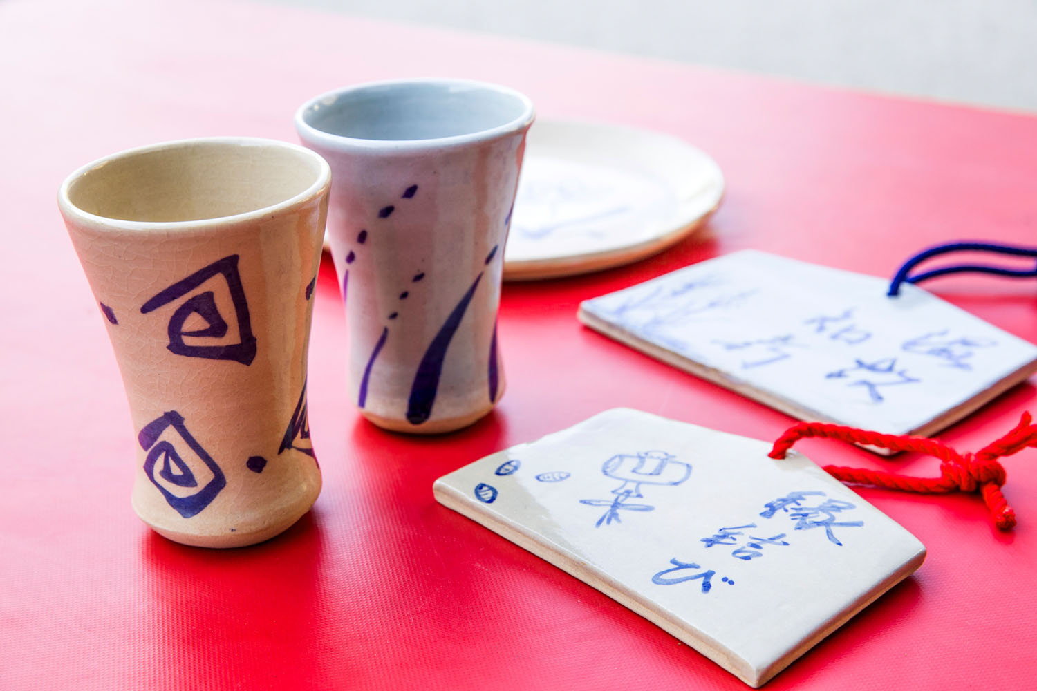 | 料金 | ・清水焼絵付け体験[京焼] 湯のみ・マグカップ・グラス 各1,650円(税込み) 絵皿 1,879円(税込み) ・京念珠ブレスレット作り 1,650円(税込み) ・京扇子に絵付け 2,200円(税込み)+送料 ・京うちわに絵付け 六立両面白 1,030円(税込み) 七立両面白 1,130円(税込み) ※入村料金は別途必要 |