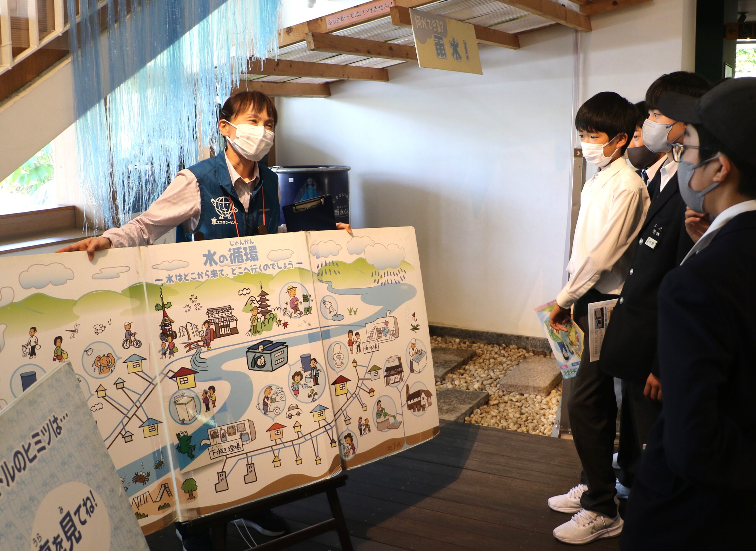 水、ごみ、エネルギーなど学びたいテーマに合わせて見学のメニューを提案します。スタッフの説明を受けて見学し、「80家族が1日に捨てた手つかずの食品ごみの量」「1人が1日に使う水の量」などの展示から、日常生活で実践できるエコについて学べます。また、自転車をこいで発電するマシンなども体験できます。