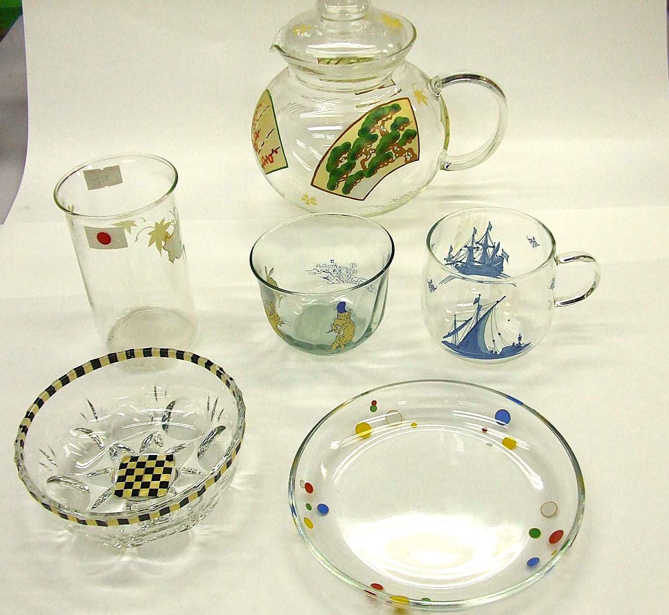 陶器はもちろん、ちょっと珍しいガラスへの絵付けを体験できます。完成品は、透明なガラスにとりどりの色が浮き上がります。はり絵、絵付け体験コーナーもあり、楽しく美しく簡単に、はり絵で陶器・ガラスのオリジナル作品が出来ます。