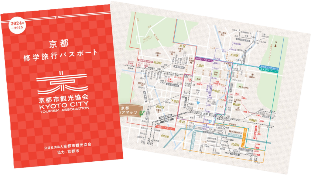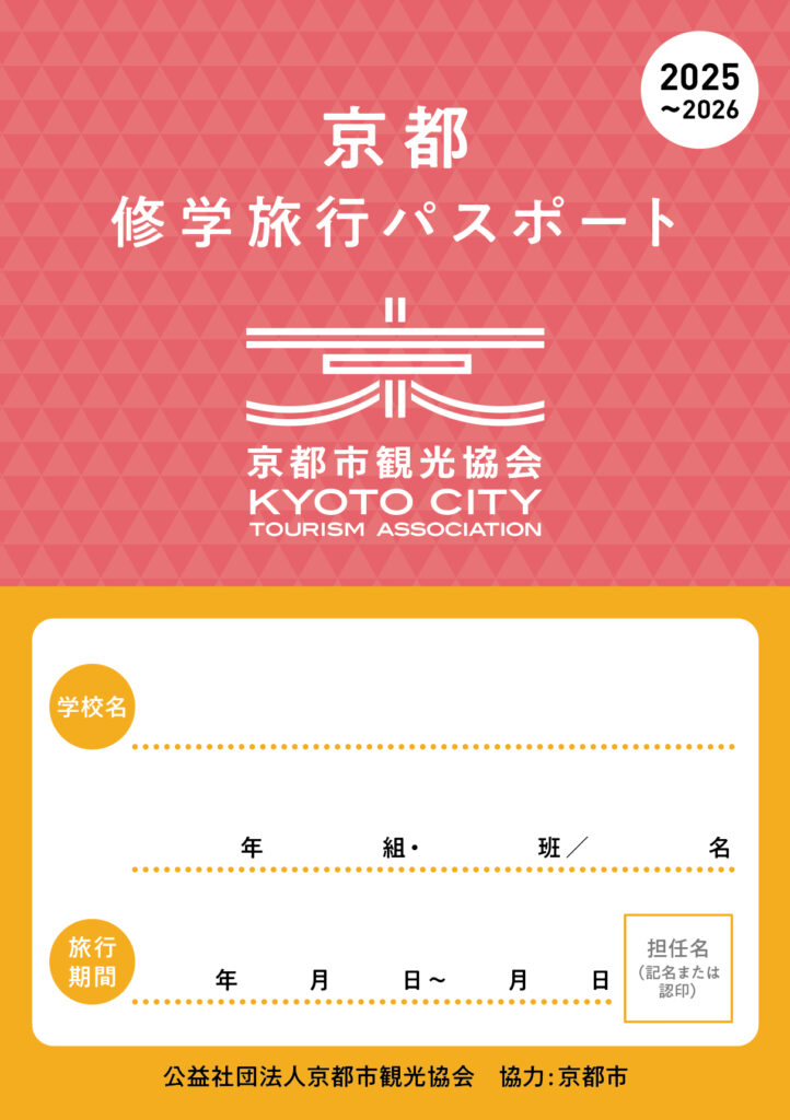 1. ホームページからダウンロード ① プリントアウトは、カラー、モノクロのいずれでも構いません。 ② 印刷サイズは問いません。 ③ 利用時は、カード型表紙の必要事項記入欄に記入し、必ずご持参ください。 2. 事前学習資料(ダウンロード・お取り寄せ)の資料申込フォームにて申請 (在庫状況によりお届けできない場合もございます。) 3. 京都市観光協会修学旅行相談窓口で配布 |