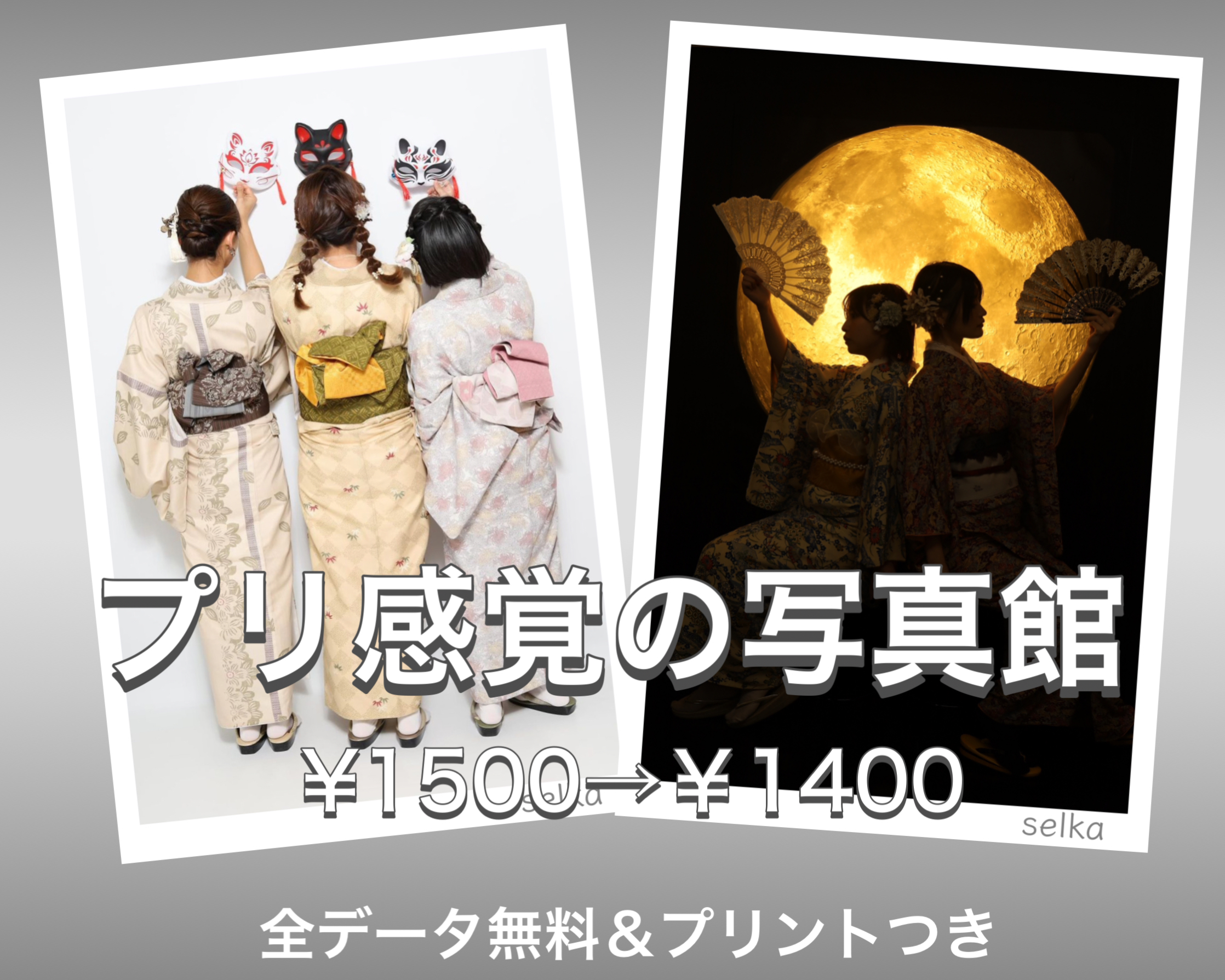パスポート提示で、お一人様100円割引 【15分撮り放題】1人1500→1400 【20分撮り放題】1人2000→1900 全撮影データを無料送信 (スマホを持ってこれない方も帰宅後にダウンロードが可能) 撮影後、全員にフォトカード印刷してプレゼントします。 |