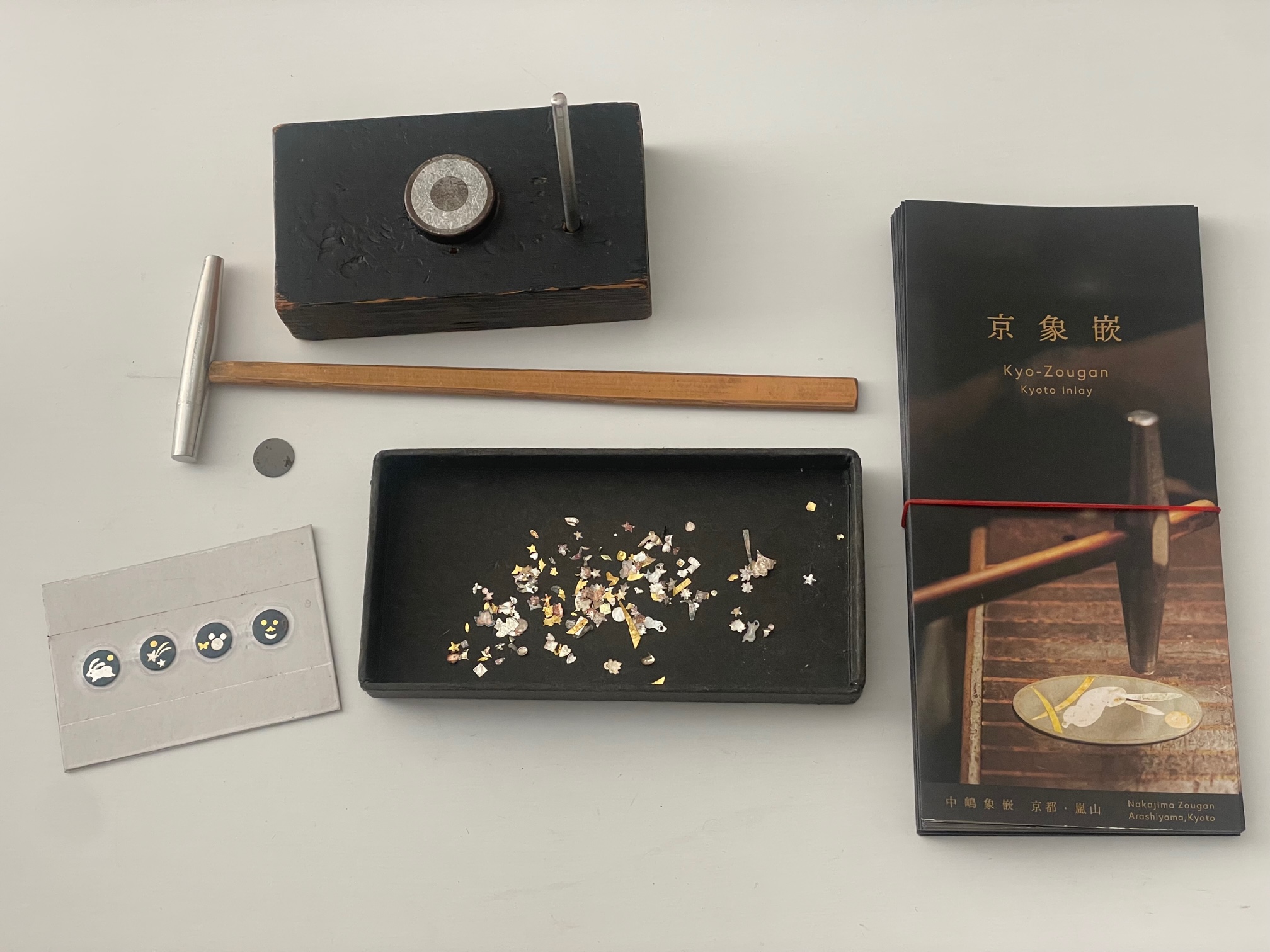 〈予約制〉象嵌ペンダント、タイ止め、ストラップ、イヤホンジャック製作体験 1個2,500円 2個3,800円 象嵌加工品10%割引 下記店舗も同様の優待あり 中嶋象嵌「嵐山店」 右京区嵯峨天龍寺北造路町